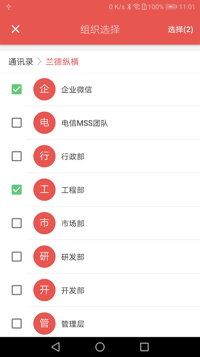通讯录选部门