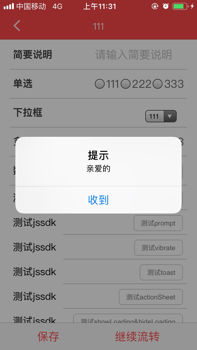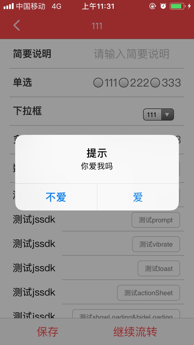 { "message": "这里是提示信息", "onSuccess": function, //成功回调 "onFail": function, //失败回调 }